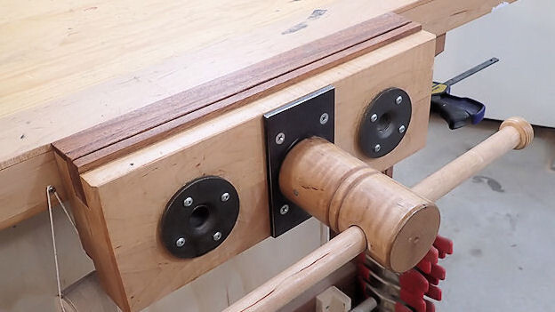 All of the components are commonly available, with no special parts to make. The majority of the vise is constructed from hardwood and 3/4″ (18mm) plywood, using standard hardware.